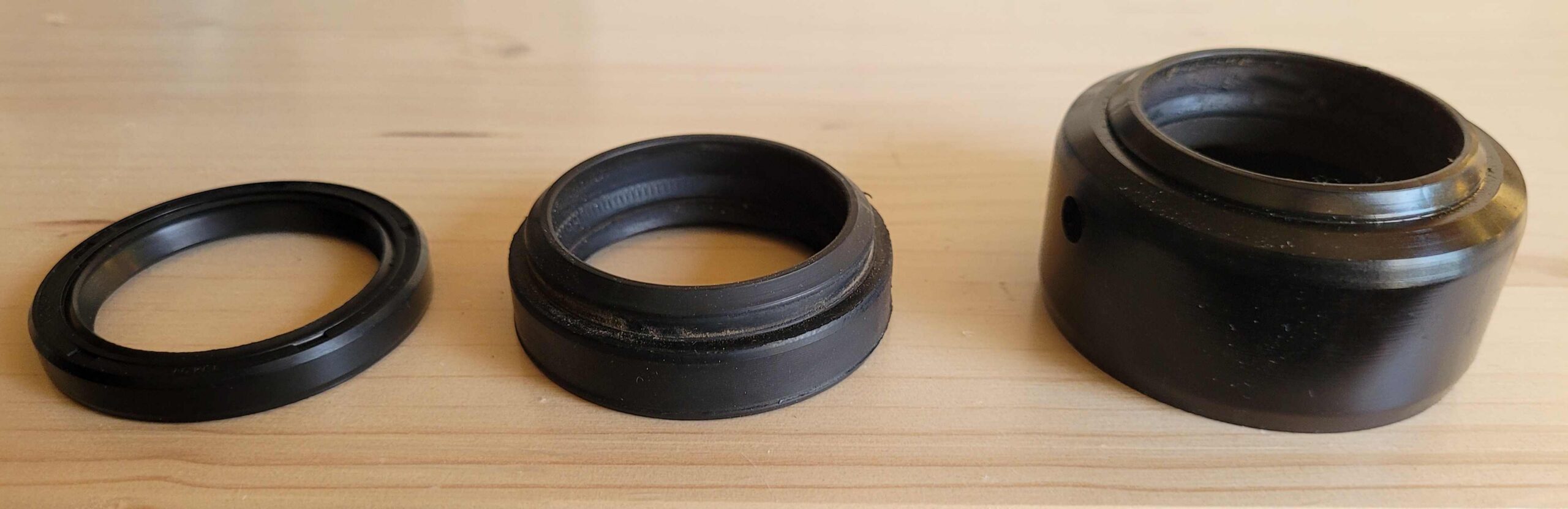 As simple as the disassembly is, finding suitable replacements for the worn or hardened fork seals is more difficult. The original seals are one-piece units with an integrated dust lip. Even after extensive online research, nothing suitable can be found—only a few forum posts from people who encountered the same issue.