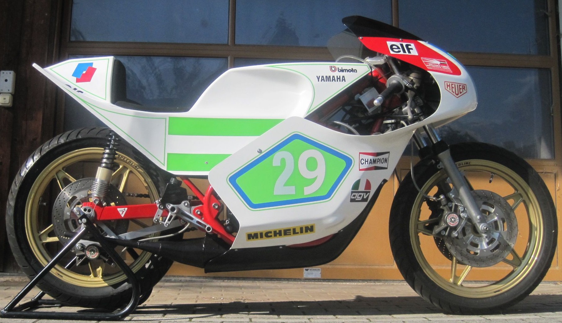 Die YB1 auf den oberen beiden Fotos wurde 2017 vom Auktionshaus Bonhams in England versteigert. Sie wurde 1975 vom Schweizer Bruno Kneubühler in der 250er Weltmeisterschaft gefahren.